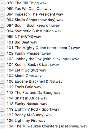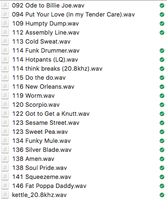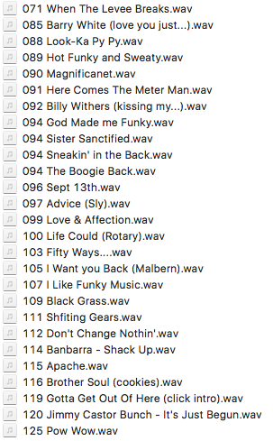 All the usual candidates are here, Worm, Think, Mardi Gras, Amen, Big Beat as well as some slightly lesser known ones. Hopefully, before any of the trainspotters point out some blatantly famous break I’ve omitted it was either a) intentional as I didn’t need it for this project or b) a genuine accident because I put this list together in a hurry.